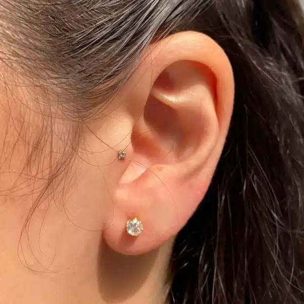 O Brinco Luz é um ponto de brilho essencial. Com zircônia central em lapidação redonda e acabamento delicado em metal dourado, ele entrega luminosidade direta e elegante, ideal para o uso diário.