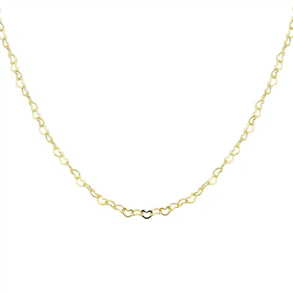 – Comprimento: 40cm – elos em formato de coração – fecho bóia