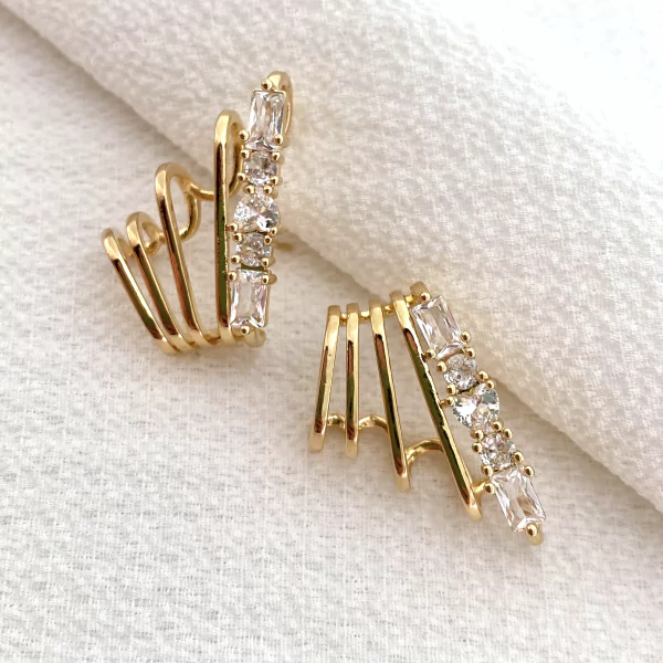Trio de brincos com pedra de zircônia